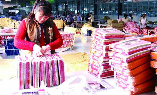 傳統(tǒng)紡織企業(yè)轉型舉步維艱與李翠華一樣從事傳統(tǒng)家紡品生產、經(jīng)銷的眾多企業(yè)和商戶,今年的日子都不好過。高密市一名從事紡織業(yè)的企業(yè)負責人表示,高密今年的紡織行業(yè)因為受到國際經(jīng)濟形勢影響,外貿出口訂單銳減,目前已經(jīng)出現(xiàn)多家小企業(yè)關門現(xiàn)象!斑@些從事家紡、毛巾等系列紡織產品生產的小企業(yè),受到資金、人才、地域、模式、銷售渠道等多方面的限制,一旦面對資金鏈斷裂和新形勢沖擊時,就會因為準備不足,抵御風險能力差,而遭到致命的打擊!睏钫兹A介紹,今年1到5月份百貨商超銷售中,床品下降9.1%。與此同時,天貓家紡產品的銷售同比增長達到110%。