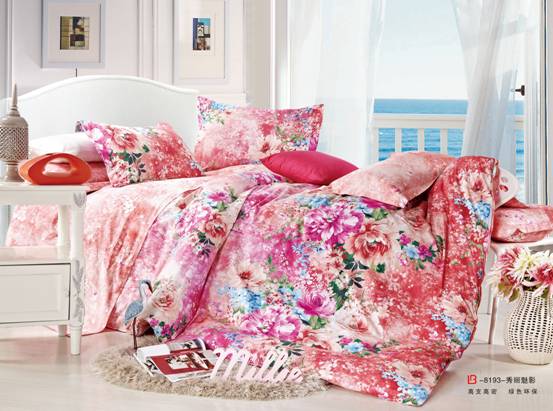 四、如花似錦:此款產品以淡粉為底色,優(yōu)雅玫瑰與飄逸的小花朵結合,亮麗卻不失穩(wěn)重的粉色作為主打色調,加上淡粉綠的花朵,朦朧中帶著柔情,更體現出小女人的情懷。