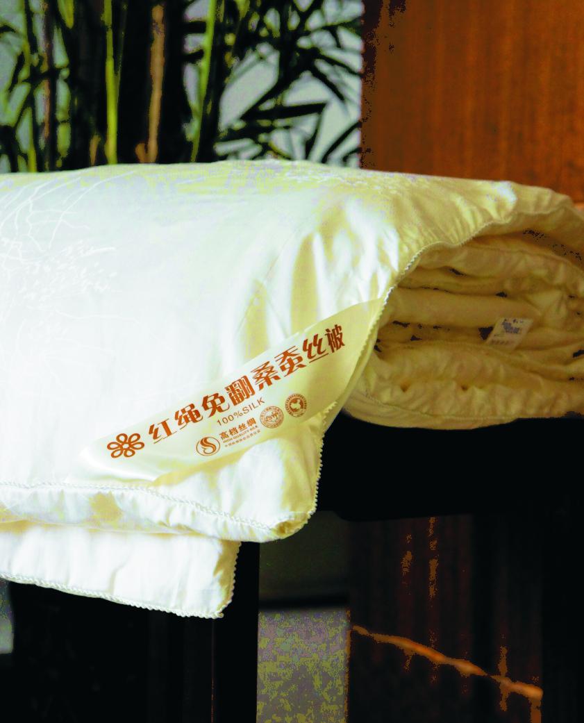 所有選材均采自杭嘉湖地區(qū),從根本上保證了蠶絲被的品質(zhì),其次在制絲的過(guò)程中紅繩家紡獨(dú)創(chuàng)了一種分離脫脂法和除味熏香工藝,使生產(chǎn)出來(lái)的絲質(zhì)完全不同于市面上其他的品牌,絲質(zhì)晶瑩潔白,柔軟細(xì)膩,沒(méi)有一般蠶絲被的那種蛋白氣味,而有一種淡淡的清香味道,這種蠶絲被令消費(fèi)者的睡眠有一種與眾不同的美妙享受。