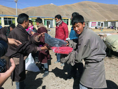 經(jīng)過(guò)一千多公里的高原旅途,平均海拔4500米,一路與懸崖和雪山相伴……10日晚,西部溫暖計(jì)劃一行人在太陽(yáng)落山前,終于趕到了石渠剛金職業(yè)救助學(xué)院。11日上午,四川甘孜州石渠縣成為首批30噸募集物資發(fā)放的第一站。首個(gè)發(fā)放地點(diǎn)就設(shè)在剛金職業(yè)救助學(xué)院,受益區(qū)域覆蓋周邊三萬(wàn)余人。