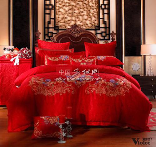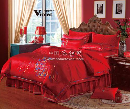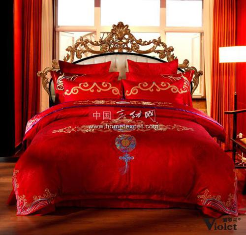 這款婚慶套件,靈感來源于優(yōu)雅高貴的旗袍,古典優(yōu)雅。主題圖案有連枝花,富貴花組成,象征著榮華福貴。愛心形的喜字,更是突出了中式婚慶的喜慶氣氛。床裙三邊簾幔設(shè)計(jì),中間掛同心結(jié)。童枕的如意鎖圖案代表了吉祥如意,方靠的繡花表示圓圓滿滿,年年有余。