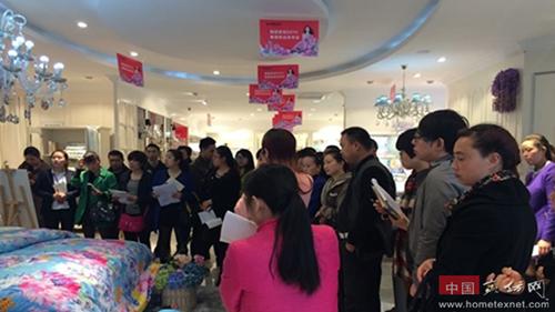 站在2015年流行主題“海洋風(fēng)”系列套件前,經(jīng)銷商們?cè)谥鞒秩说那逦、完美的解說下。紛紛表示:這一刻他們是真的醉了!因?yàn)樵诤K{(lán)色的主色調(diào)下,輕柔舒適的面料經(jīng)過精致的工藝加工而成的櫥窗花系列,令他們有種耳目一新的感覺。同時(shí),決定在客戶面前主推這款產(chǎn)品!在夏被專區(qū),主持人就芳香類夏被做了重點(diǎn)講解,經(jīng)銷商們紛紛邊拍照、邊低頭看做工,聞香味!一位經(jīng)銷商激動(dòng)地說:這才是真正的有香味的被子,睡在這樣的被子里,才能有置身大自然的感覺,感到心曠神怡!她準(zhǔn)備回去介紹給自己的老客戶和閨蜜!