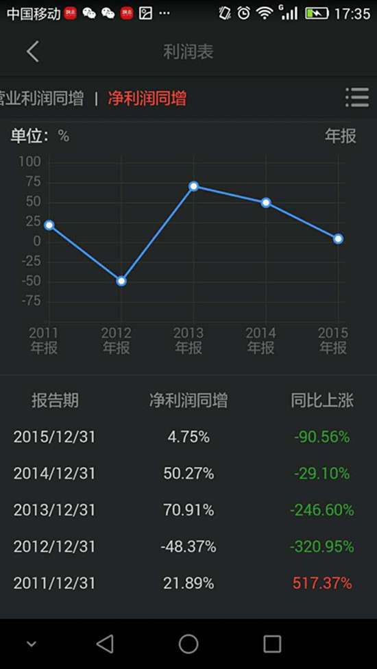 夢(mèng)潔家紡2011—2015年凈利潤同比增速圖