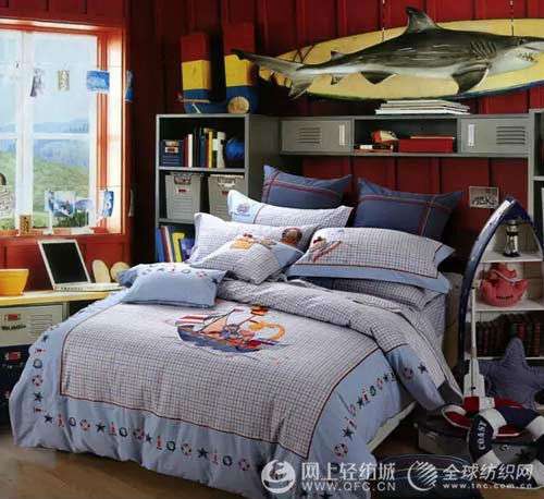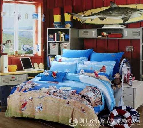 產(chǎn)品花型元素延續(xù)兒童喜愛的熊元素為主要素材,結合自然清爽的藍色系,用航海旅行休閑的元素組成航海探險的場景。風格適合男孩子活潑好動的個性。搭配高檔全天然優(yōu)質色織全棉面料,吸汗透氣。舒適的觸感幫助孩子在晚上安靜舒適入睡。