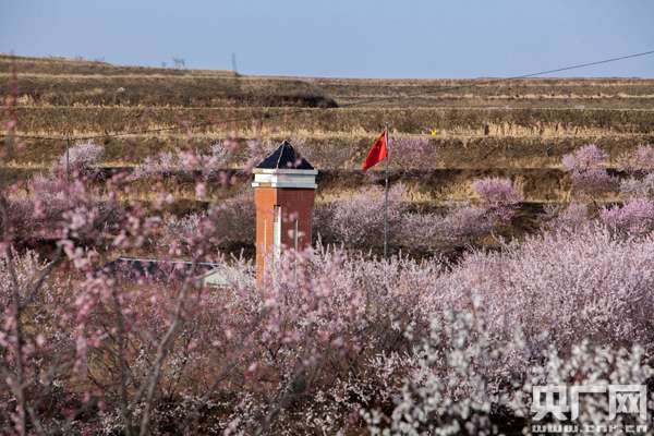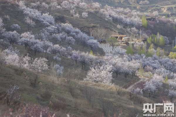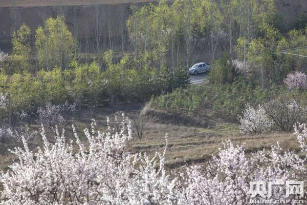央廣網(wǎng)銀川4月17日消息 (記者許新霞 實習(xí)生徐升)四月的寧夏彭陽,春意正濃。隨處可見桃花、杏花爭奇斗艷,漫山遍野的粉色與層疊的綠色梯田形成一片片繡花的綠色“地毯”。位于彭陽縣楊坪村的茹河瀑布雄偉壯觀,如一道道白練飛瀉而下。山花與瀑布的邂逅,讓彭陽的春天變成了一幅天然的山水畫。