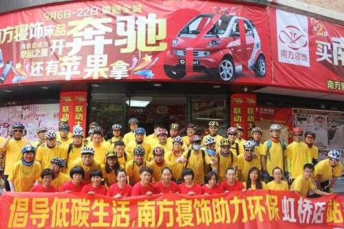 作為此次南方寢飾金秋狂歡節(jié)的系列活動(dòng)之一,“低碳生活,從我做起”活動(dòng)當(dāng)天,志愿者們從南方寢飾虹橋店出發(fā),途經(jīng)莘塍鎮(zhèn)、汀田鎮(zhèn)、塘下鎮(zhèn)、梧田鎮(zhèn)、溫州市區(qū)等,中途在安陽、羅陽、莘塍、雪山路等南方寢飾各專賣店休息,并合影留念,影像中不僅記錄下了這一具有紀(jì)念意義的經(jīng)典時(shí)刻,還記錄下了南方寢飾正在如火如荼舉行著的金秋狂歡節(jié)的火爆場景。在每一個(gè)休息的站點(diǎn),后勤人員都會(huì)熱情地遞上毛巾、送上茶水,這讓志愿者們倍感欣慰。