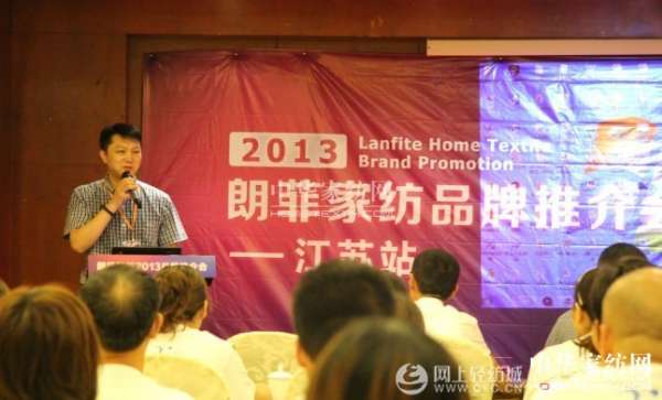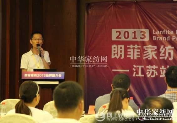 朗菲家紡總經(jīng)理丁甫做推介會(huì)政策講解