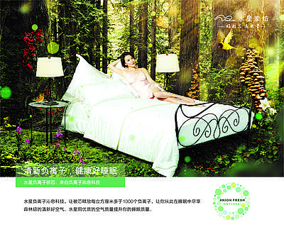 所以,可以想象一下,如果使用水星家紡具有“負離子沁息科技”的套件、涼席、被子或枕頭等床品,在夏天封閉且空氣流通不暢的空調(diào)臥室里,大家可以享受到清新、健康的睡眠。