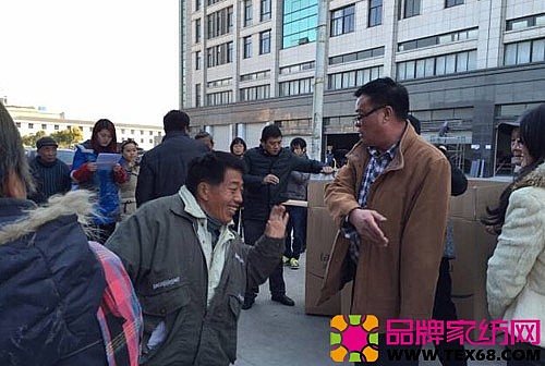 \u00A0\u00A0\u00A0 2月9日下午3:00,藍(lán)絲羽家紡的企業(yè)代表一行人滿載著一箱箱羊毛被來(lái)到姜川村公共服務(wù)中心,在村支書和其他村干部的協(xié)同下發(fā)放給村里的低保戶家庭。