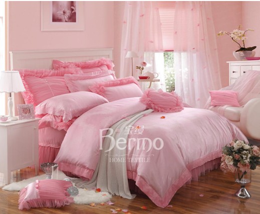 蕾絲花邊床品,高貴奢華又透著點性感。柔粉色床品,絲滑輕柔觸感,透著高貴氣息,蕾絲花邊的加入更是讓人愛不釋手。