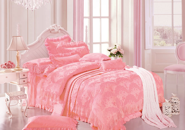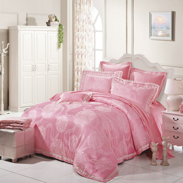 產(chǎn)品特點:柔柔的粉色調(diào)如夢如幻,運用多種提花組織的設(shè)計,全面體現(xiàn)花型在面料上的立體感和豐富的層次感,讓消費者從視覺上能感受到產(chǎn)品高雅及與眾不同的奢華設(shè)計;運用意大利蕾絲花邊設(shè)計,做工精致、細膩,詮釋了其精湛的工藝和低調(diào)奢華的設(shè)計理念。
