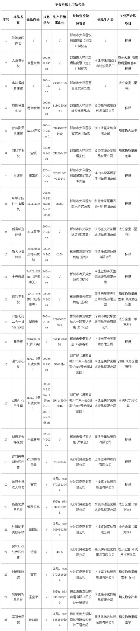 - 廣東工商公布缺陷商品名單 水星家紡、薇娜詩(shī)等標(biāo)稱品牌床上用品上榜