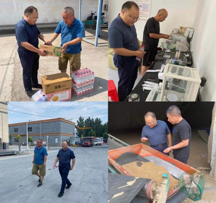 慰問組先后到襄城公司、種業公司、尉氏公司、延津公司、愛廚公司衛輝庫、外貿公司西平庫和世通公司部分夏糧收購庫點,查看并詢問夏糧收購進展、糧食質量、小麥糧源以及職工生活保障等情況,對同志們頭頂炎炎烈日、腳踏滾燙地面,始終堅守一線工作崗位,并取得了優異的收購成績給予充分肯定,鼓勵干部職工發揚糧食人優良傳統多收糧收好糧,再三叮囑大家做好防暑降溫、勞逸結合,注意身心健康。